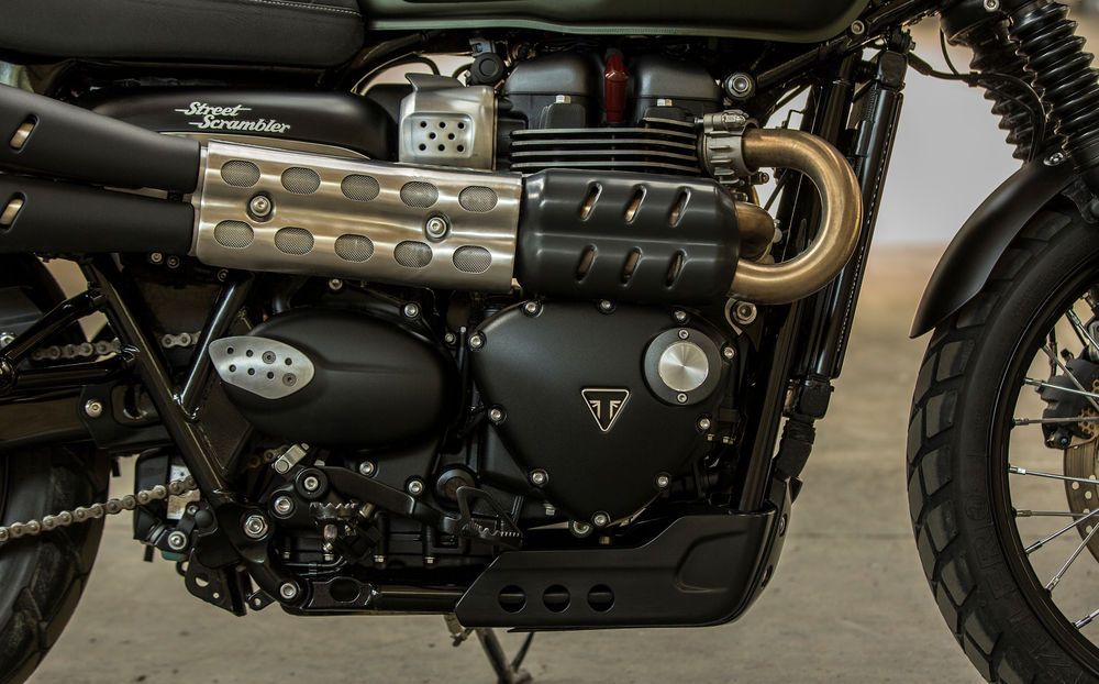 En ville c’est un vélo, ça vous pousse presque à prendre les pistes cyclables – je dis presque Monsieur l’agent – mais dès que vous sortez un peu des sentiers battus, vous vous sentez pousser des ailes, son moteur de 900 cm3 pourra fruster les motards qui rêvent de planter Valentino Rossi dans la montée de Saint-Cergue, mais pour un « vieux motard » comme moi, je dois dire que ce n’est que du plaisir, ça accélère tout en douceur, le couple est agréable dans les repriseS – peut-être que j’encouragerais les plus rebelles à mettre une ligne d’échappement Vance & Hines histoire d’avoir un bruit un peu plus rauque, mais comme ça, brute d’origine avec rien de modifié – malgré la liste d’accessoires dythirambique que Triumph propose (démontrant qu’ils ont appris du concept de la personnalisation des Américains).