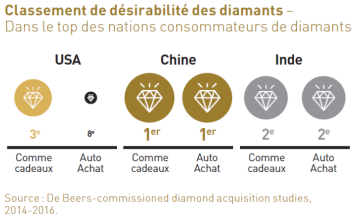 Les principaux acteurs dans le diamant, ainsi que des sociétés de consulting prestigieuses comme Bain & Co ont fait beaucoup de recherche sur le sujet et les résultats sont assez surprenants. J’en retiens les trois les plus importants.