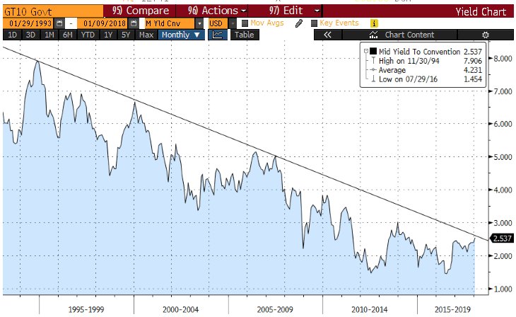 Nous sommes le 10 janvier et je ne sais déjà plus quoi dire. Depuis 8 jours, le marché monte sans discontinuer et rien ne semble pouvoir l’arrêter. Les hausses succèdent aux hausses et les arguments sont les mêmes tous les jours. Il n’y a rien qui change, tout le monde s’accroche au fait que la réforme fiscale va tout changer, que l’économie va bien et que l’inflation est sous contrôle. L’an passé nous avions entamé l’année en étant quasiment tous convaincus que 2017 serait l’année du KRACH et cette année, c’est « plus jamais faibles et à poil les shorts », comme on dit dans le métier.