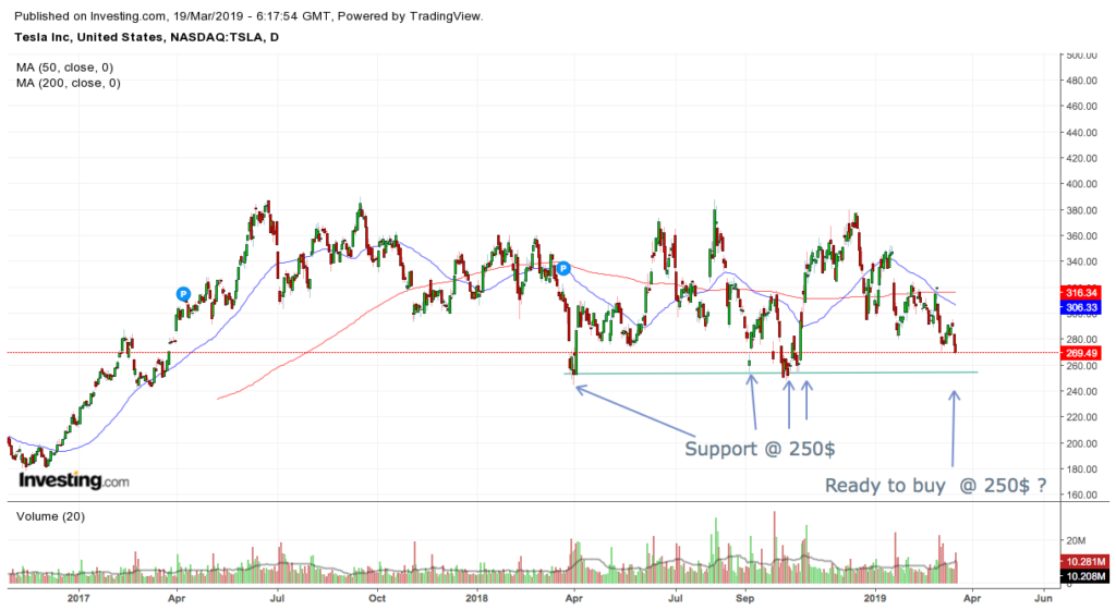 Le titre de sa société continue de souffrir et revient gentiment sur des niveaux techniques importants. Pour ceux qui pensent encore que Musk est un visionnaire et que les Tesla, c’est trop chouette à rouler, vous pouvez déjà mettre des limites à l’achat sur le niveau des 250$. Avec des stop-loss, si ça va plus bas. Comme vous pouvez le voir sur le chart ci-dessous.