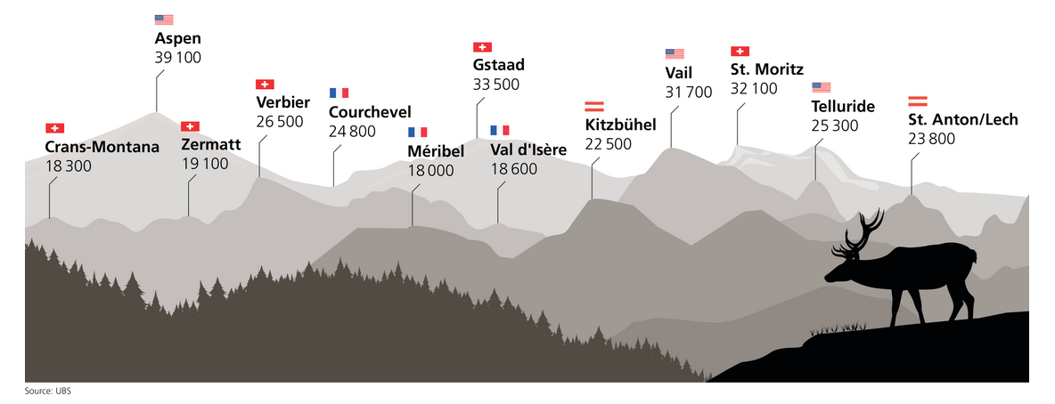 Les prix dans les destinations suisses les plus chères sont légèrement plus élevés qu’en Autriche et en France. Les meilleurs sites italiens coûtent beaucoup moins chers. Par exemple, à Cortina d’Ampezzo le mètre carré se négocie en moyenne à CHF 10’200.