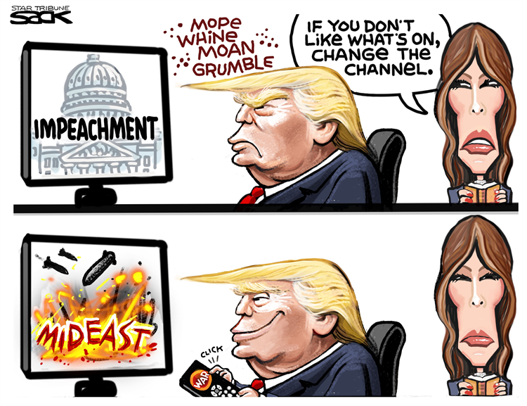 Si l’on résume l’affaire qui nous tiens en haleine depuis le 1er janvier, ça tient en quatre lignes : Trump a buté un général-terroriste pour les Américains et un général-héros de guerre pour les Iraniens. Ensuite on fait un peu de bodybuilding pour se montrer qui a les plus gros bras. Puis les Iraniens ont été autorisés à tirer des missiles sur des bases américaines désaffectées pour ne pas perdre la face et maintenant on est égalité et on peut retourner à nos occupations. Comme se faire réélire pour Trump et comme… je ne sais pas quoi pour les Ayatollah-machin-truc.