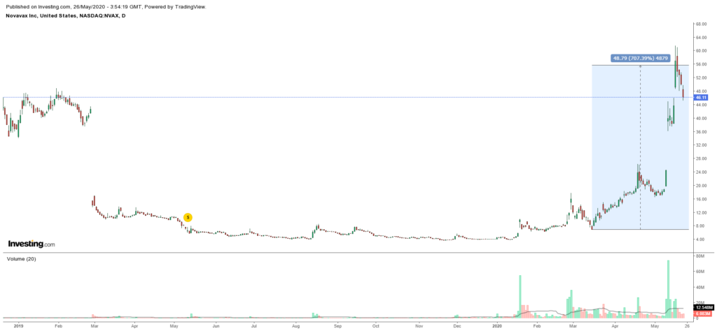 Tout ça pour vous dire que ce que je viens de vous raconter, c’était mardi dernier. C’était mardi dernier mais je pourrais simplement faire un copier-coller de ma chronique en changeant le nom de Moderna pour Novavax. Oui parce que cette semaine c’est Novavax qui avance « sérieusement » sur un vaccin contre le COVID. Un vaccin qui porte le nom adorable de NVX-CoV2373 – sans avoir fait d’études d’épidémiologie, je parie que le COV au milieu c’est pour « COVID » et que le NVX au début c’est pour Novavax. Le reste ça doit être de la déco, mais là n’est pas le souci. Il n’y a d’ailleurs pas de souci, tout va juste tellement bien que l’annonce faite cette nuit par NOVAVAX est largement suffisante pour euphoriser le marché ce matin. L’Asie s’envole sur la nouvelle. Le Nikkei est en hausse de 2.2%, Hong Kong monte de 1.8% et la Chine suit avec une avance de 0.6%. La Chine qui a même essayé de temporiser sur la loi qu’ils veulent mettre en place ; s’ils doivent taper sur des manifestants, ils taperont doucement en passant d’abord le manifestant au gel hydro alcoolique et le lance-flamme ne sera pas utilisé la première semaine.