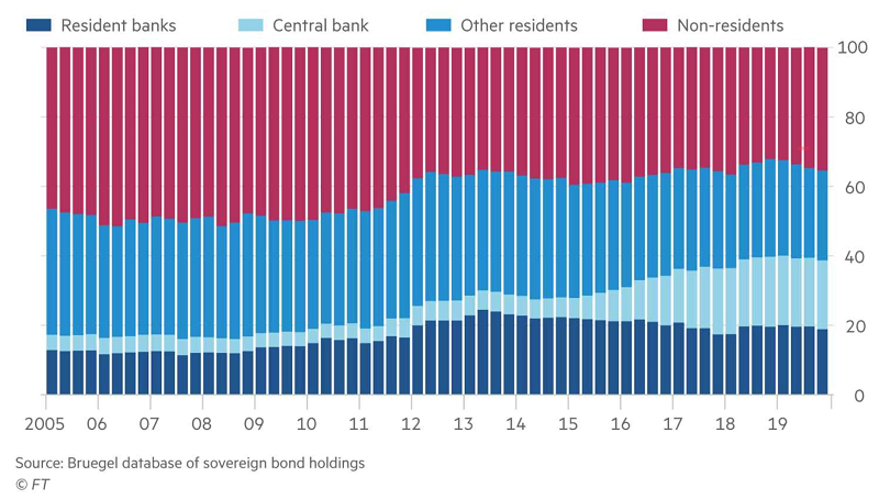 Cette mutinerie n’est pas tant problématique pour les marchés des capitaux. En effet, la BCE a établi un filet de sécurité efficient au cours des dernières années. Si l’on considère le maillon européen le plus faible, à savoir l’Italie, la structure réelle de sa dette est relativement protégée. En effet, environ 40% de la dette italienne est dans les mains d’institutionnels solides. Seul 1/3 est détenu par des étrangers. Si un statu quo était imposé à la BCE, cela ne créerait probablement pas de crise ou panique systémique. De plus, des solutions techniques comme la BCE répondant adéquatement, ou tergiversant, sinon poursuivant ses plans sans l’Allemagne sont vraisemblables. Les risques financiers et de contagion sont contenus à court terme. Mais le GCCJ a peut-être créé une crise insoluble.