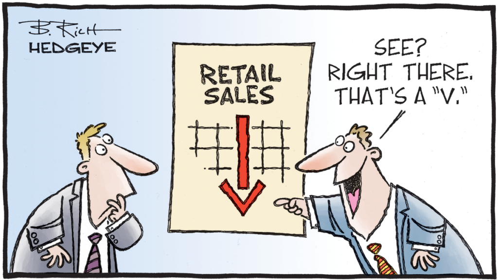 La « Dream Team » d’hier était composée de 4 éléments. Tout d’abord il y a eu Powell. On en a déjà parlé hier matin ; le patron de la FED a donné une interview dans le magazine 60 minutes sur CBS durant lequel il a exprimé ses craintes, sur le ralentissement économique qui nous attend, sur les possibilités de voir le chômage monter à 25% – comme dans les années 30 et sur le fait qu’il ne savait pas grand-chose, qu’il avait peu d’indications et de visibilité sur l’avenir. En revanche il a aussi dit qu’il ne fallait pas s’attendre à un ralentissement économique « aussi long et pénible » que dans les années 30 – et là on s’est souvenu combien c’était dur – puis, il a ajouté qu’il ne fallait pas parier CONTRE l’économie américaine. À partir de ce moment-là, de cet instant très précis, le marché a complètement effacé les moindres commentaires négatifs de Powell et s’est concentré UNIQUEMENT et SEULEMENT sur l’aspect positif. Entre le verre complètement vide et le verre qui déborde, on a choisi la seconde option, le ton était donné, la chasse aux ours était ouverte et le « moto » de la journée était : « À poil les shorts »