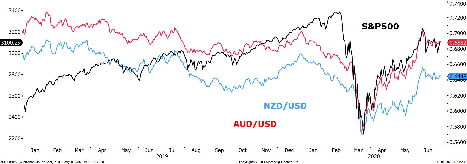 Les monnaies du Pacifique continuent de suivre les mouvements d’appétit ou d’aversion au risque. Cela devrait continuer à être le cas ces prochains temps, bien qu'un redémarrage inattendu des infections puisse peser sur les devises de ces pays qui ont jusqu’à présent réussi à contenir la propagation du virus.