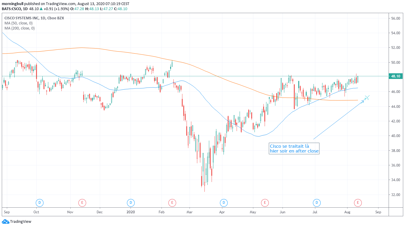 Dans les nouvelles du jour, tout le monde parle de la nomination de Kalama Harris et du fait qu’elle ait déjà commencé son travail de sape en attaquant Trump sur tous ses échecs. Il y a aussi Cisco qui a publié des chiffres pas terribles et qui a clairement exprimé ses craintes au niveau des ventes – ce qui laisse craindre un ralentissement massif dans les dépenses au niveau IT. Sans compter que le CFO se tire. Le titre plongeait de 6% after close. Et puis Tencent a cartonné au niveau des chiffres, mais on a toujours la trouille rapport à WeChat et à la possibilité que Trump leur claque la porte en plein visage. Lyft a également publié des revenus en chute libre de 61% – comme s’ils avaient besoin de ça alors que la Californie les oblige – eux et UBER – à reconnaître leurs chauffeurs comme des employés. Du coup, les deux sociétés pourraient quitter l’état américain jusqu’à nouvel ordre.