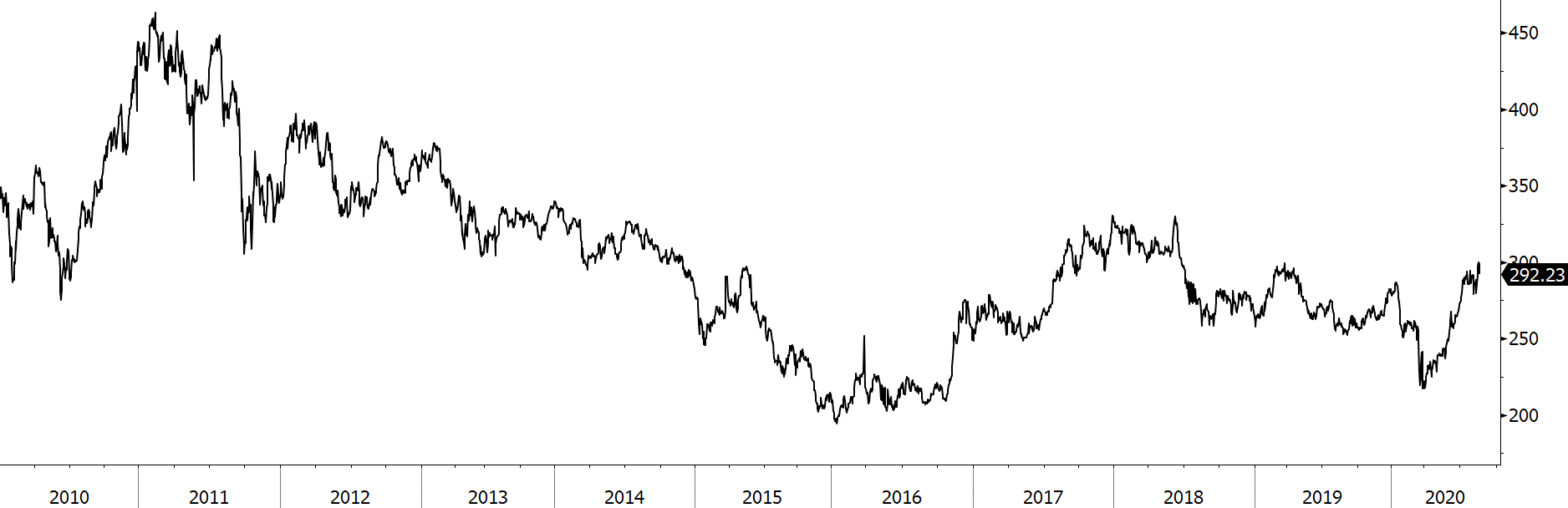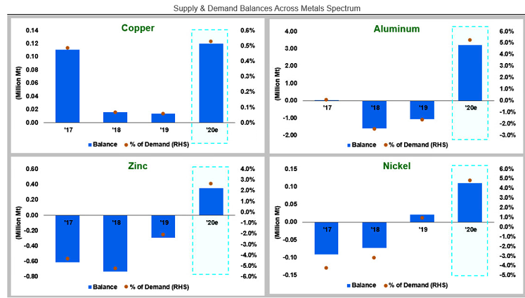 Malgré la pandémie et son choc économique, les prix des métaux industriels progressent en anticipation à une reprise globale en V en 2021 et à une reprise en cours des investissements en infrastructure en Chine grâce aux stimulations monétaire et fiscale.