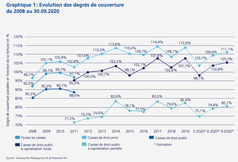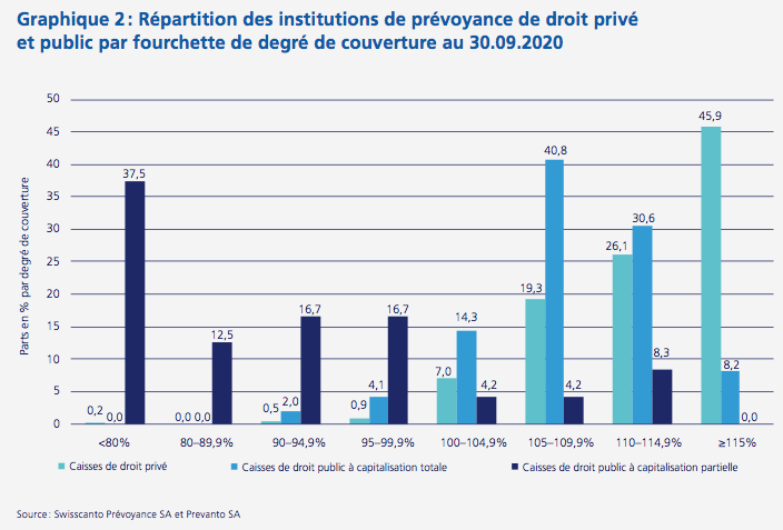 Selon les estimations des experts, 98,4% des institutions de prévoyance privées et 93,9% des institutions de prévoyance de droit public à capitalisation totale montrent une couverture de plus de 100% à la fin du 3ème trimestre.