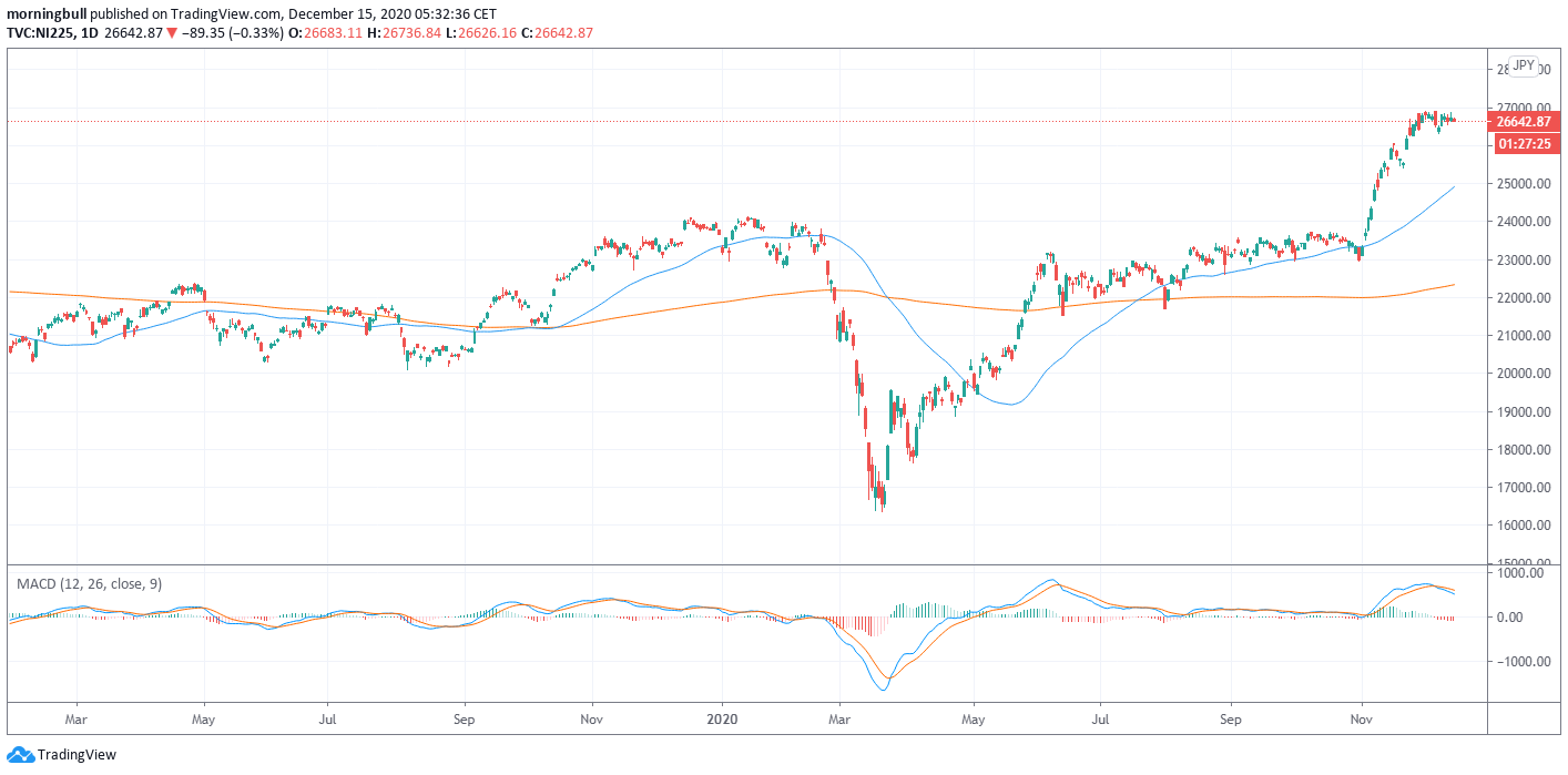 Les Etats-Unis ont commencé la vaccination à grande échelle. Cela aura été indubitablement LA nouvelle de la journée. Pour être franc, ça ne s’est pas ressenti sur le marché, ou en tous les cas, pas en clôture. On a bien eu un semblant d’euphorie à l’ouverture alors que les premières images de gens vaccinés tournaient en boucle sur CNBC, mais une fois que l’on eut « admis » la nouvelle, les intervenants ont commencé à « prendre les profits ». Oui, parce que comme on savait depuis bien longtemps que Pfizer/BioNTech allait venir avec un vaccin et que ça allait fonctionner, on prenait les bénéfices. Le bon vieux « sell the news » ou « vendez la nouvelle », pour ceux qui préfèrent. Et puis on sent aussi qu’on est au bout de l’année et qu’on n’a plus vraiment l’envie d’y aller alors que la plupart des nouvelles sont « dans le marché », il faudrait quelque chose qui nous surprenne vraiment pour que les quelques jours qui restent sur 2020 soient vraiment utiles à quelque chose. Non parce que là on vit vraiment sur du réchauffé on dirait. Les vaccins ça n’impressionne plus personne et on aimerait surtout voir que cela apporte du concret, plutôt que des promesses. Le Stimulus, on attend de voir parce que bien que les dernières négociations soient bien avancées et que l’on s’autorise à penser que les Sénateurs ne quitteront pas Washington sans avoir « fait quelque chose », le marché aimerait – là aussi – voir du concret. Et puis Biden a été confirmé dans son rôle de Président, mais étonnement il semble soudainement moins « Messie » qu’il y a quelques mois. Maintenant il va falloir délivrer et faire autre chose que causer, ce qui promet d’être bien plus rigolo. En résumé, on s’est excité sur du vent ces dernières semaines et aujourd’hui, avec l’arrivée du vaccin ; c’est l’heure du réveil et de concrétiser les choses, sauf que ça va prendre du temps et que le marché n’est pas toujours très doué en ce qui concerne la patience.