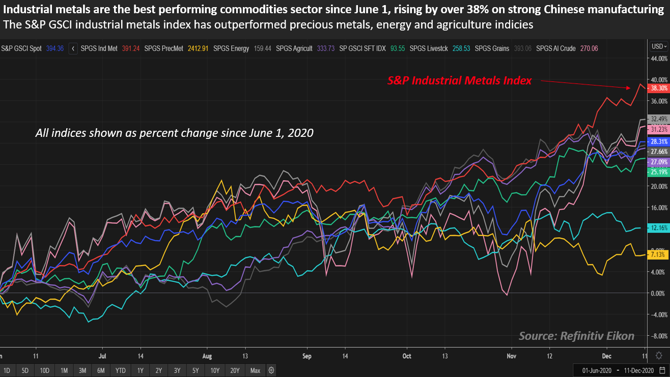 L’indice des métaux industriels S&P Goldman Sachs – un sous-ensemble de l’indice des matières premières S&P Goldman Sachs (S&P GSCI), qui est largement suivi – a augmenté de plus de 38 % depuis le 1er juin. Et le cuivre, l’aluminium, le nickel et le zinc ont tous éclipsé les gains de prix réalisés par l’or, qui a atteint des sommets historiques en août.