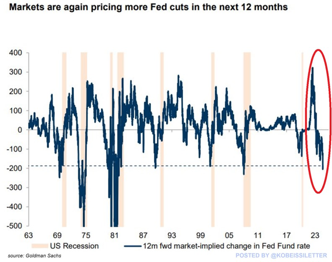 Donc la FED a baissé les taux et on a l’air plutôt contents de la chose, même si cela soulève pas mal de questions. Si les marchés sont capables de ne pas trop se poser de questions et veuillent bien continuer à croire que la FED est notre amie, ça devrait bien se passer. Néanmoins, il faudra tout de même noter que si l’on en croit les contrats futures sur les taux, ils sont en train de parier sur une récession. Selon les dernières indications, on table sur HUIT baisses de taux sur les 12 prochains mois et d’ici le 31 décembre nous devrions être plus bas de 1% cumulé. Powell a d’ailleurs déclaré que la baisse de 50 bp devrait être la seule. Là aussi, on l’espère bien, parce que si en novembre, il remet ça, ça va commencer à sentir le pâté.