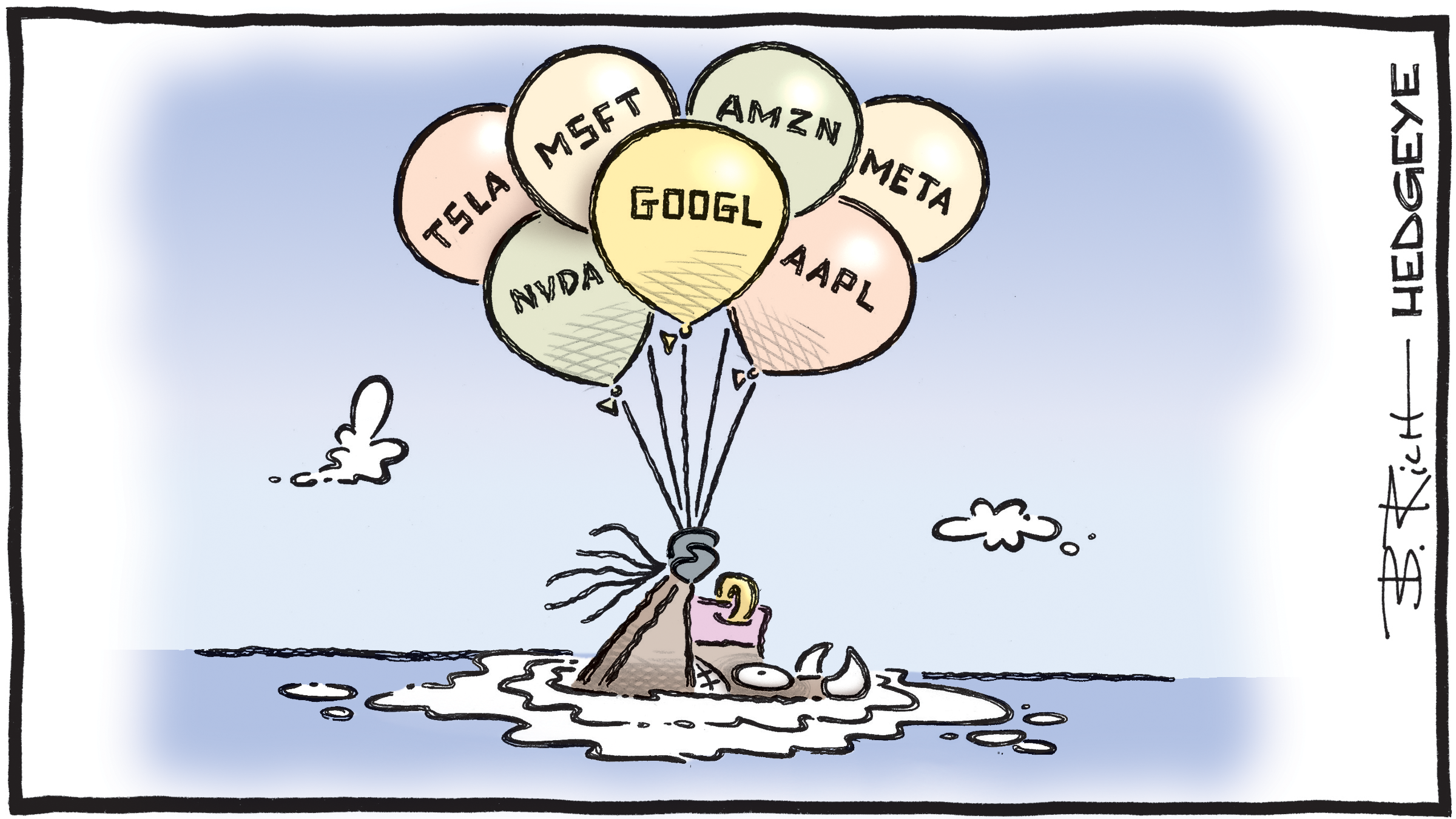 Depuis la « panique » du Carry Trade du mois d’août, le marché n’avait plus paniqué de la sorte. Depuis la panique du Carry Trade, nous n’avions plus vu la volatilité exploser à une vitesse pareille. Hier soir, l’indicateur de la peur, a pris près de 80% en quelques minutes. On peut supposer que le fait que les Américains soient « all-in » sur les actions américaines et que le niveau de « bullishness » n’ait jamais été aussi élevé dans l’histoire, soient des raisons valables pour la violence du sell-off d’hier soir. Alors il va falloir savoir raison garder, car même si le Dow Jones a perdu 1123 points pour sa DIXIÈME séance de baisse consécutive (chose qui nous n’avions plus vue depuis CINQUANTE ans – enfin, en ce qui me concerne, je ne l’avais même jamais vu !), même si le S&P500 était en baisse de 2.95% et que le Nasdaq plongeait de 3.56%, nous ne sommes pas encore en Bear Market et lorsque l’on regarde le comportement des Magnificent Seven, on se rend compte que ça a fait mal, mais que ça n’est pas encore la fin du monde.