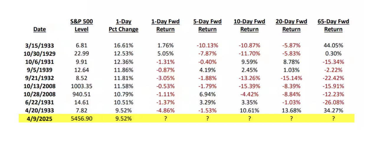 Et puis comme nous étions en « édition spéciale » toute la journée, il faudra aussi noter que l’on est allé chercher les statistiques du passé et on s’est rendu compte que l’explosion haussière de mercredi n’était que la dixième plus forte hausse de tous les temps. Que la plupart des journée stratosphériques datent des années 30 et que le record absolu est détenu par la journée du 15 mars 1933, le S&P500 était monté de 16.61% et aussi qu’on avait fait beaucoup mieux en octobre 2008. On a aussi pu constater que lorsque nous avons une journée « pétage de plomb » comme avant-hier, dans les 10 jours qui suivent, on a tout reperdu, ou presque. Et puis pour ceux qui se demandent pourquoi le marché avait explosé en 1933, c’est parce qu’ils venaient de passer ce que l’on a appelé l’Emerging Banking Act qui était censé restaurer la confiance dans le système bancaire. Il y a des choses qui ne changent pas dans le monde merveilleux de la finance mondiale. Ce jour-là, tout monte, même les titres pourris, les junk stocks de l’époque. Les gens rachètent à l’aveugle. C’est un peu la première fois depuis 1929 qu’on voit un retour de l’appétit pour le risque. Mais attention, c’était pas encore le bull market du siècle. Juste un énorme short squeeze couplé à un peu d’espoir.