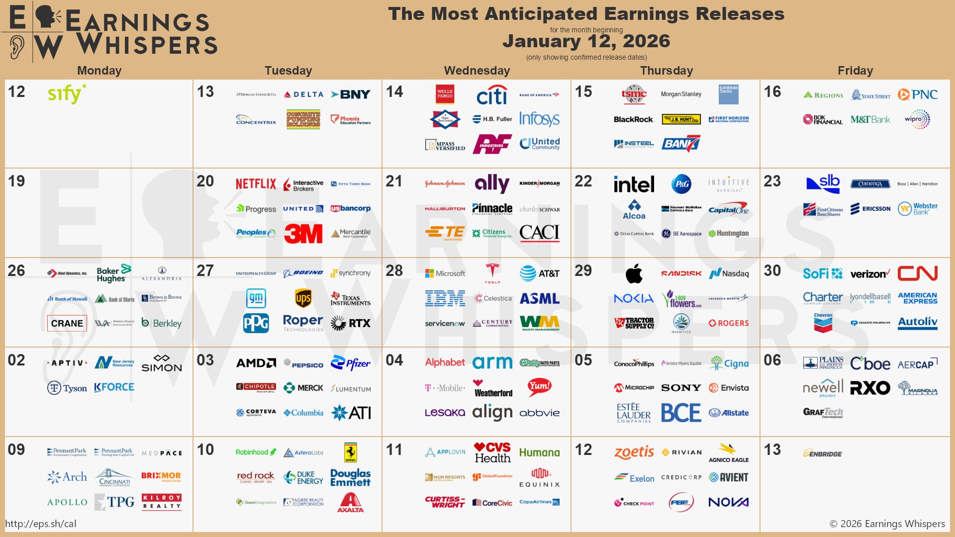 Sur cette belle réflexion, on notera qu’Oracle a effacé une partie du rebond mis en place le 17 décembre. On en reparlera sûrement au fur et à mesure des publications trimestrielles qui vont s’intensifier ces prochaines semaines. Concentrez-vous sur les guidances et les prévisions de tout un chacun, la moindre méfiance sur l’avenir des financements des datacenters, pourrait coûter cher. À propos de chiffres trimestriels, on continue aujourd’hui avec encore des bancaires, puisque les mastodontes du monde merveilleux de la finance sont de sortie ; nous aurons Goldman Sachs, Morgan Stanley et BlackRock. En Suisse, il y aura Richemont.