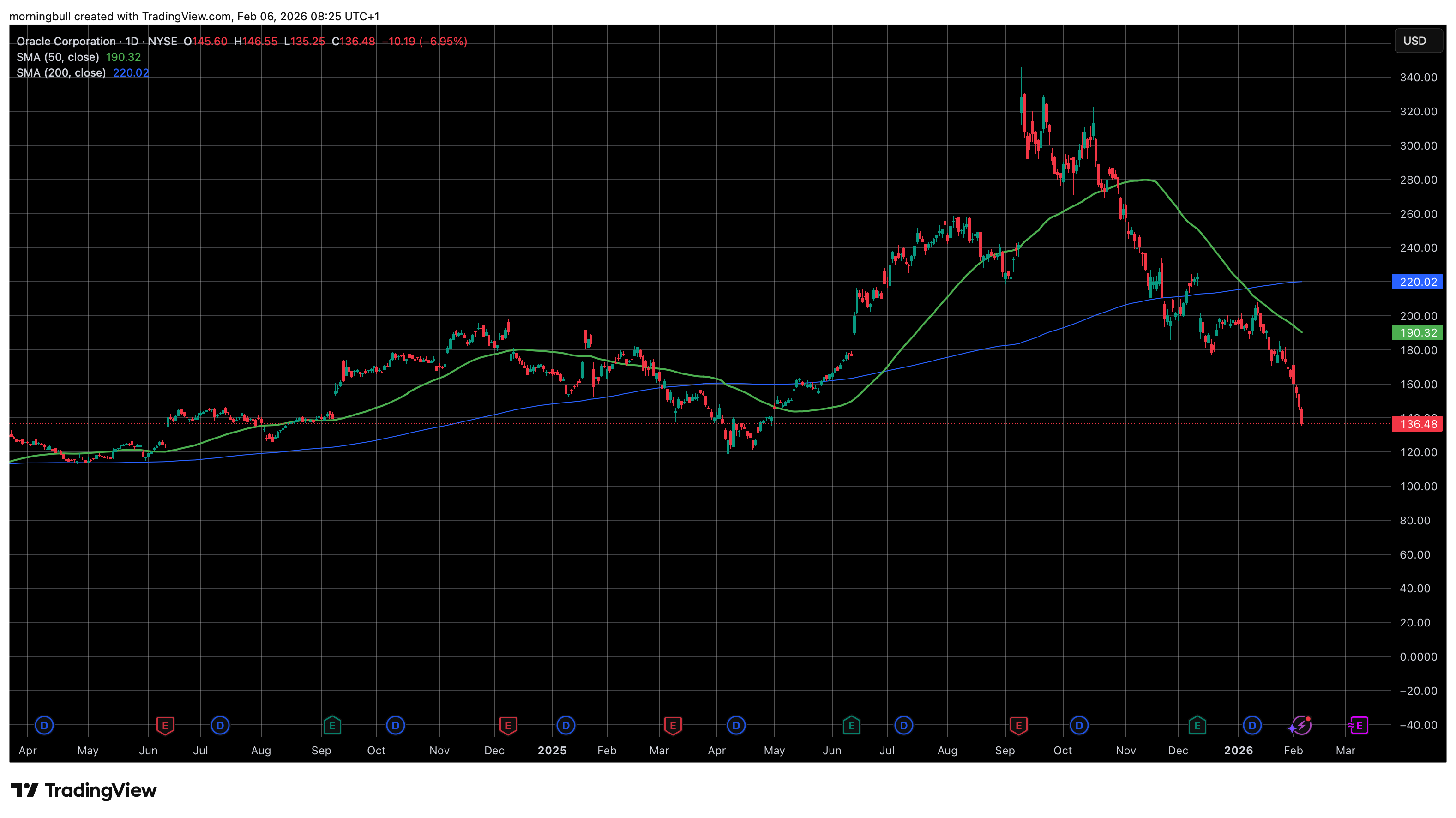 Autrement, on retiendra encore que lors des publications, rien n’est pardonné. Esthée Lauder a foiré son trimestre et se prend 20% dans les dents. Mais de l’autre côté ROBLOX a surpris en bien et se traitait en hausse de 10%. Alors que SNAP a surpris en bien il y a 24 heures, mais s’est fait massacrer de 13% dans la foulée. Comme quoi il suffit d’un rien pour changer le narratif. On est tendus, le marché et les experts ne pardonnent rien. On peut encore signaler Oracle. Oracle qui aligne sa huitième séance de baisse consécutive. 25% de perdu en 8 séances, c’est sa pire baisse depuis plus de 20 ans. Et depuis le top du 10 septembre on a perdu 61%. Et puis y a Strategy. Strategy vient de se prendre une claque monumentale : 17% sur la séance d’hier — et avec elle, le fameux principe du “on ne vend jamais son bitcoin” qui se retrouve face à la réalité. La société annonce plus de 12 milliards de pertes trimestrielles, conséquence directe de la chute du bitcoin. Avec plus de 700’000 BTC achetés à un prix moyen supérieur au marché actuel, la valeur des avoirs passe désormais sous la capitalisation boursière de l’entreprise. Le multiple de valorisation tombe sous 1. Autrement dit, le marché valorise Strategy moins que ses bitcoins— une zone que le management lui-même considérait comme potentiellement dangereuse, car elle pourrait forcer des ventes. Officiellement, le discours reste ferme : vision long terme, conviction intacte. Mais le marché teste cette promesse en conditions réelles et ça serait mieux que Michael Saylor s’en sorte. On n’a pas besoin de ça.