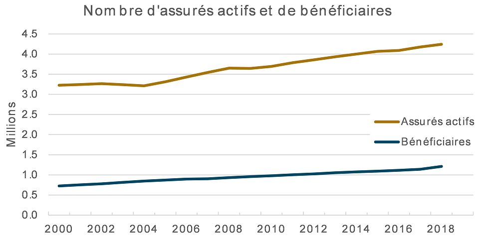 La prévoyance professionnelle suisse a vu en 20 ans sa taille considérablement augmenter. Le nombre d’assurés atteint environ 4.2 millions en cette fin de décennie. Soit un million d’assurés en plus par rapport au début du siècle. Le nombre de bénéficiaires est également en croissance de près de 66% pour atteindre 1.2 millions de rentiers.