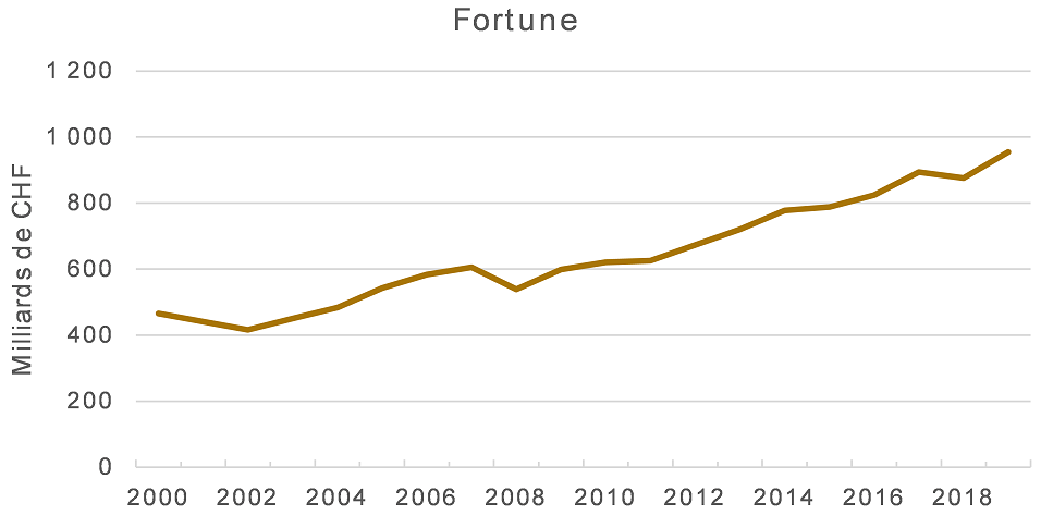 De la même manière, la fortune gérée par les fondations de prévoyance a bénéficié d’un double effet: des cotisations bien supérieures aux rentes versées et la progression des marchés financiers. La barre symbolique des 1000 milliards de CHF est en passe d’être atteinte. La fortune aura donc doublé en 20 ans avec une augmentation de 500 milliards de CHF.