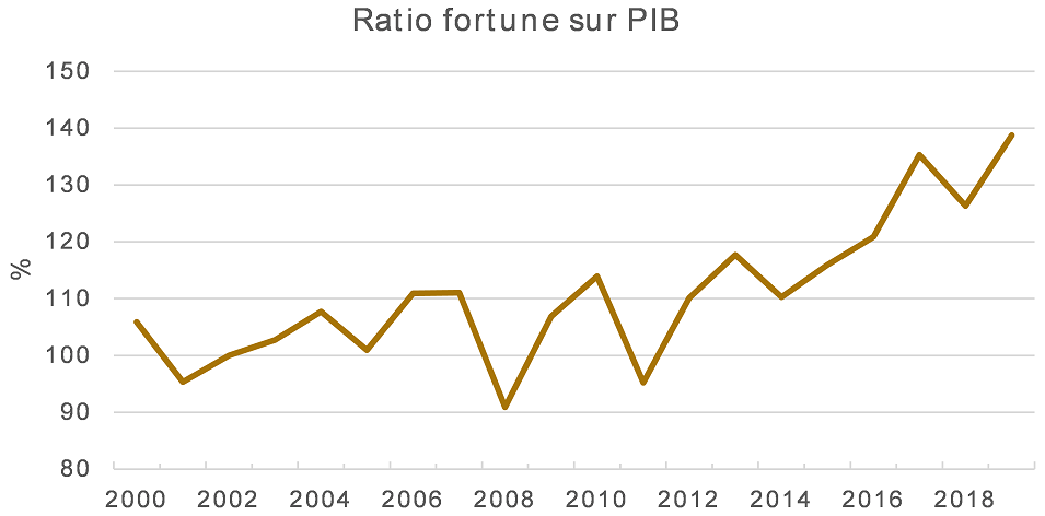Pour mieux appréhender ce volume, le ratio de ces actifs sur le PIB permet de constater l’importance de la prévoyance dans l’économie helvétique. Avec environ 140% du PIB, les actifs de prévoyance ont augmenté de 30% en deux décennies.