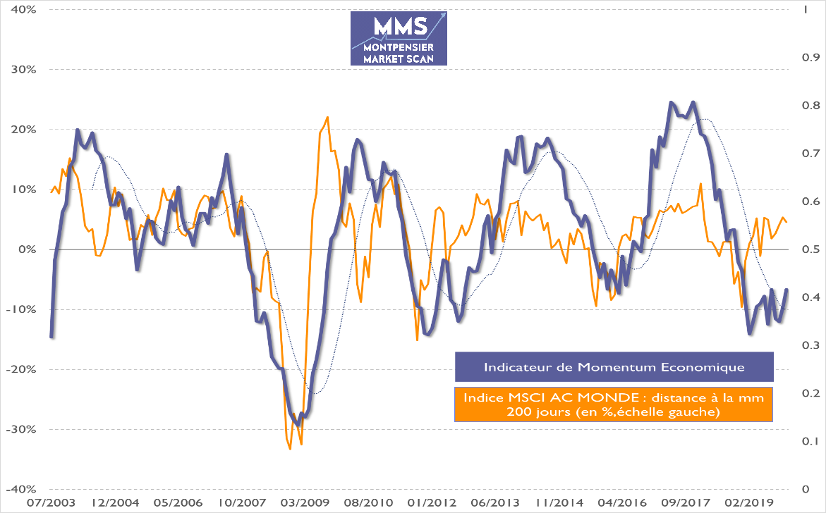 Face à cette incertitude politique, une possible accélération de la dynamique économique mondiale – aujourd’hui peu enthousiasmante, comme le montre notre indicateur MMS de Momentum économique – repose largement sur l’espoir de politiques fiscales plus expansionnistes, surtout en Asie et en Europe.