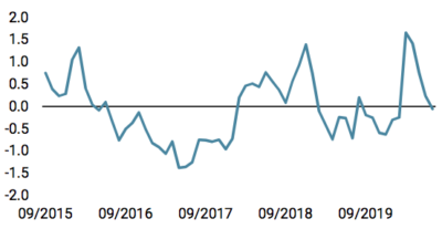 Outre le niveau et la trajectoire de la croissance mondiale, les prix actuels fournissent également des informations importantes sur la nature et les moteurs de l’expansion future, tels que prévus par les marchés financiers. La performance relative dans tous les secteurs ou styles d’actions confirme que les tendances passées vont s’accélérer et s’amplifier. La surperformance continue du secteur technologique met en évidence l’ampleur et la vitesse de la numérisation économique. De la même manière, la performance du style «Quality» souligne l’avantage d’avoir un bilan sain et une visibilité sur les ventes. Du fait de ces éléments, le facteur «Momentum» a généré la meilleure performance de tous les facteurs MSCI depuis le début de l’année avec une hausse de 4,3% contre -5,6% pour le MSCI World. Ainsi, le marché reflète la conviction que ces tendances vont se poursuivre au cours des prochains trimestres.
