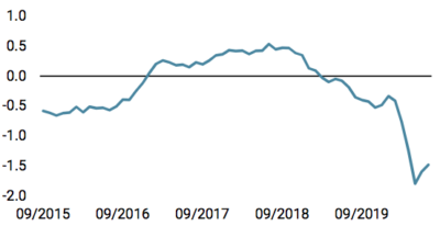 Nous suivons les deux principales primes de risque, l’inflation et la croissance, en utilisant différents indicateurs. Tous chantent la même chanson: la prime de croissance reste déprimée tandis que la prime d’inflation a rebondi à partir d’un niveau très bas. En conséquence, la performance de nos paniers macro d’actifs, développés pour suivre les anticipations des principaux risques macroéconomiques (récession, surprise d’inflation et tensions des marchés) montre une performance positive en juin pour le panier inflation (+ 3,2%) tandis que le panier croissance est resté inchangé. De la même manière, la prime de risque d’inflation incorporée dans le rendement des obligations souveraines a fortement augmenté depuis son point bas de mars, tandis que la prime de croissance, reflétée par la différence entre le rendement obligataire nominal et le «break even» d’inflation, reste négative, confirmant que pour les investisseurs, l’expansion n’est pas à l’horizon à moyen terme.