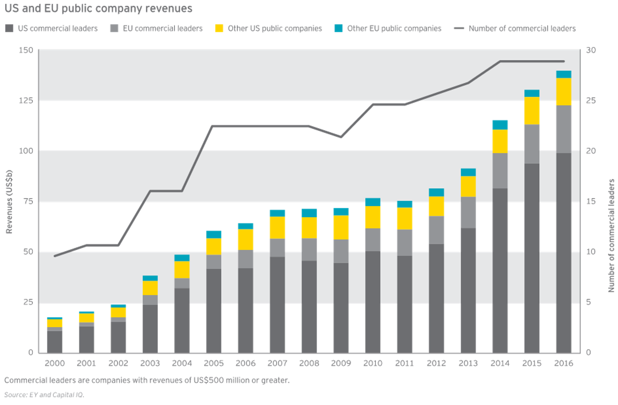 De plus, les revenus des principaux acteurs du secteur sont en augmentation constante depuis l’an 2000. Une accélération notoire de cette tendance ces trois dernières années montre la bonne « santé » de cette industrie.