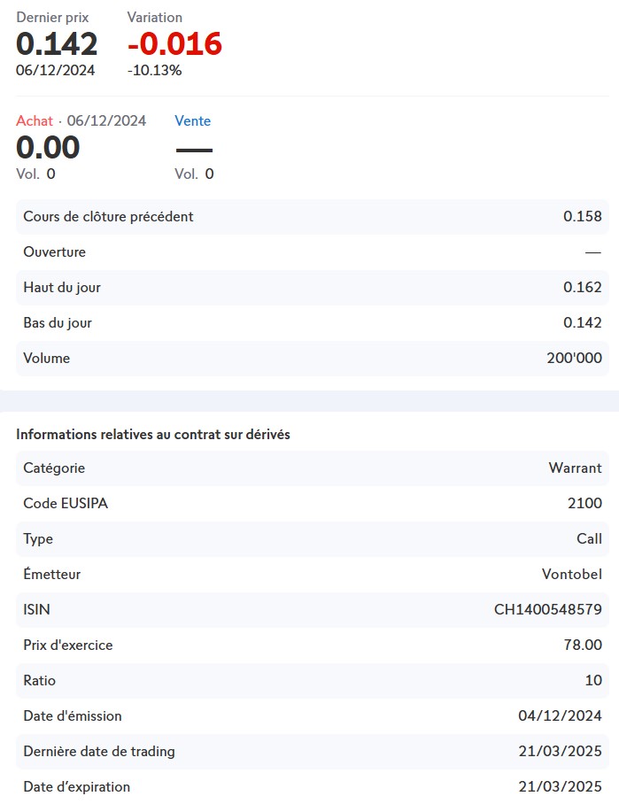 Comme nous l’avions montré lors du dernier webinaire, une personne qui ne s’intéresserait qu’au gain au capital potentiel sans recevoir de dividende pourrait acheter un warrant call de la famille des DOTS. Une solution serait la suivante : acheter un warrant call qui aurait une date de fin ultérieure à la distribution du dividende (qui a lieu fin avril) ou acheter un warrant très long terme.