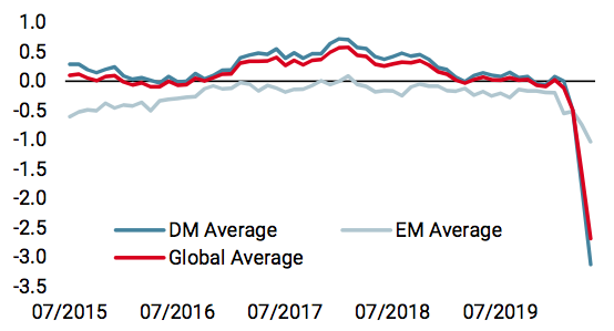 - Au niveau mondial, si l’indice Citi Economic Surprise Index reste négatif, il s’est amélioré par rapport à ses plus bas niveaux de fin avril. Notre propre indice surprise couvrant les économies du G10 reste déprimé, mais 48% de ces séries s’améliorent actuellement.