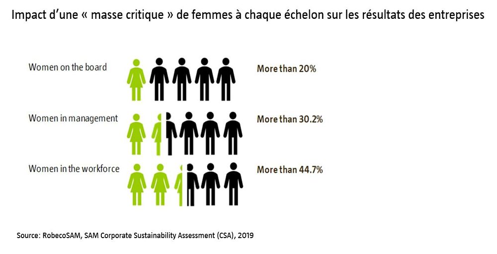 En 2017, le Fonds monétaire international (FMI) a établi un lien entre l’absence de parité hommes-femmes et une «croissance économique sous-optimale». C’est également ce que montre l’étude menée par RobecoSAM.