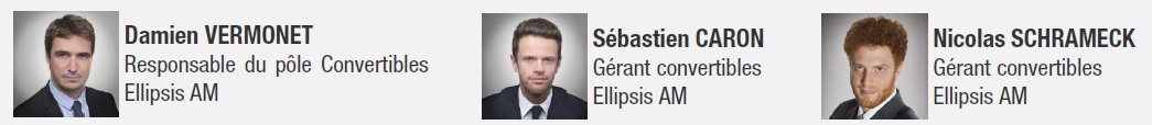 L’équipe de gestion convertibles d’Ellipsis AM est en place depuis près de 3 ans, forte de plus de 15 ans d’expérience en moyenne sur les marchés Europe & Monde. Damien Vermonet est Responsable du pôle et a déjà géré des fonds globaux chez Schroders. Avec Sébastien Caron et Nicolas Schrameck, gérants-analystes convertibles, ils ont consolidé depuis 3 ans la robustesse et la gouvernance du process, illustrées par des performances résilientes en relatif au sein du peer group*.