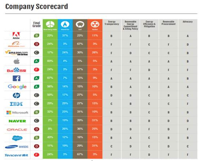 Malgré les engagements publics pris par plus de 20 des plus grandes sociétés Internet d’alimenter leurs infrastructures numériques avec de l’électricité 100 % renouvelable, l’accès à ces sources fait toujours défaut. Greenpeace a récemment publié un rapport soulignant que la « Virgina Data Center Alley », où se trouvent de nombreux grands centres de données, est alimentée en énergie par la société Dominion Energy, dont l’approvisionnement en énergie comprend un pourcentage décevant de 4% de sources renouvelables. En Asie, les centres de données se développent à un rythme très rapide et leur mix énergétique repose encore largement sur des énergies à fort taux d’émission de gaz à effet de serre, comme le charbon.