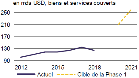 Ainsi, les engagements tel que décrit dans la Phase 1 sont pour le moins très ambitieux – voire peu crédibles –, la Chine devant ni plus ni moins doubler, en seulement deux ans, ses importations en provenance des É-U alors même qu’elle fait face à un ralentissement de sa demande domestique. En outre, cette approche de «commerce géré» risque de détourner, plutôt que développer, les échanges mondiaux. Par exemple, la Beijing pourrait être contrainte d’acheter davantage de voitures américaines (≈ 25% de part de marché en Chine) en réduisant ses importations en provenance de l’UE (≈ 50%) ou du Japon (≈ 20%).
