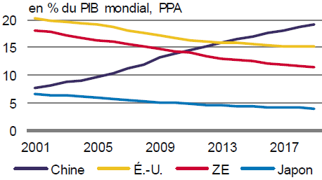 Depuis l’entrée de la Chine dans l’OMC, le poids du secteur des services s’est nettement renforcé, rendant l’économie plus vulnérable aux perturbations actuelles. En outre, un repli prolongé de la consommation des ménages pénaliserait également l’investissement puisque les dépenses en capital des entreprises chinoises sont devenues extrêmement sensibles à la demande domestique. Enfin, le poids de la Chine dans l’économie mondiale a triplé depuis deux décennies.