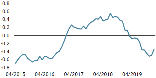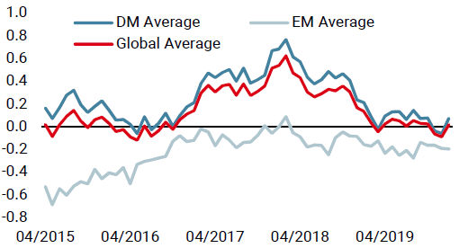 Le Coronavirus frappe l’économie mondiale à un moment où notre Nowcaster croissance commence à s’améliorer et l’inflation touche à son plus bas niveau. La dynamique positive a été confirmée cette semaine avec un ensemble de données macroéconomiques solides qui ont poussé le SP500 vers de nouveaux sommets, clôturant sa meilleure semaine en six mois. Des chiffres encourageants, un positionnement extrême et des anticipations de relance ont déclenché une violente rotation des facteurs. Le facteur «croissance» a nettement sous-performé le facteur «value» alors que le facteur «momentum» a chuté. Cette amélioration des données est en partie due à la résolution de la guerre commerciale, mais elle risque d’être de courte durée une fois que le choc de l’offre et de la demande en Chine apparaîtra dans les données mondiales.
