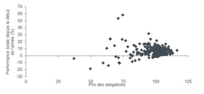 Source : Credit Suisse, indice Credit Suisse Liquid European High Yield, performances totales depuis le début de l’année (YTD) jusqu’au 15 mai 2019.