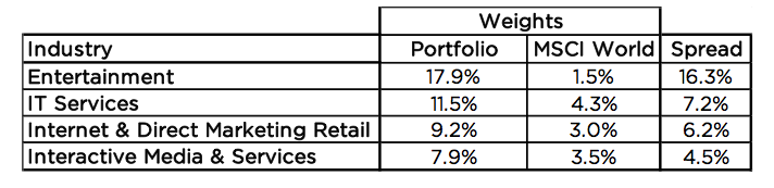 En termes de secteurs, la stratégie est actuellement fortement surpondérée sur les segments qui devraient continuer à bénéficier de la tendance « Home Alone ».