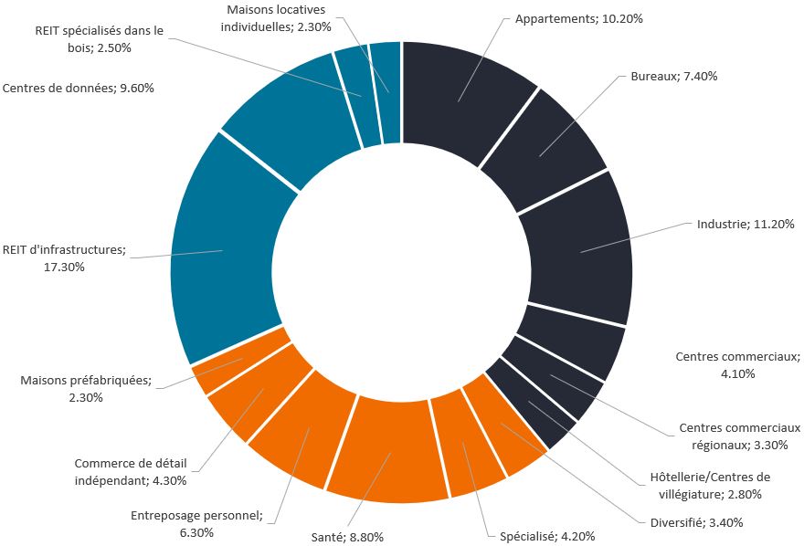 Répartition sectorielle de l’indice FTSE NAREIT All REITs