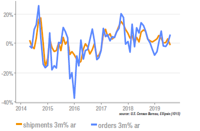 Les commandes de biens durables en juillet ont dépassé les attentes, à +2,1% m/m, avec +0,4% pour la partie core. La différence tient à un fort rebond des commandes d’avions civils, sans toutefois que celles-ci retrouvent les niveaux prévalant avant l’affaire du 737 Max. Sur la même période, les livraisons de biens durables ont, elles, baissé de 1,1%, prolongeant une tendance récente plutôt faible. Les révisions du mois précédent étaient également négatives. Si l’on ne retient que la composante des biens d’équipements core, c’est-à-dire celle concernant l’investissement productif, on observe une hausse des commandes de +0,4% et une baisse des livraisons de 0,7%.