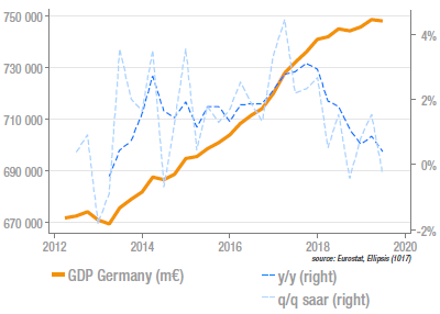 La publication du PIB révisée pour le T2 a confirmé une contraction séquentielle annualisée de 0,3%. Mais l’économie domestique apparait solide, avec une consommation (réelle) en hausse de 1,4% y/y et des salaires de 4,4% y/y, alors que les échanges extérieurs ont contribué négativement de 2,1% (pa) sur le T2. Surtout, et grâce à l’action publique, les investissements contribuent positivement. La stimulation tant attendue est déjà en place mais s’effectue à un rythme lent. Celui-ci est dicté par les contraintes d’efficacité que le gouvernement impose à ses dépenses et à des contraintes structurelles (préparations, procès, manque de maind’oeuvre, …). Le salut ne viendra donc probablement pas de la relance allemande.