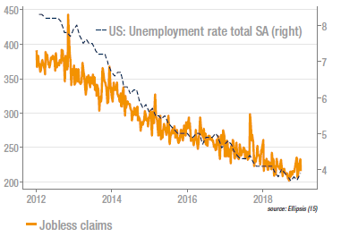 La semaine passée avait vu des créations d’emploi largement au-dessus des attentes attester que la marché de l’emploi ne donnait aucun signe d’essoufflement. Cette semaine, ce sont les inscriptions au chômage qui s’inscrivent sous les attentes, à 216k. Cet indicateur – un des plus fiables pour détecter un éventuel retournement d’activité – a été assez volatil récemment, ce qui est assez fréquent à cette époque de l’année.