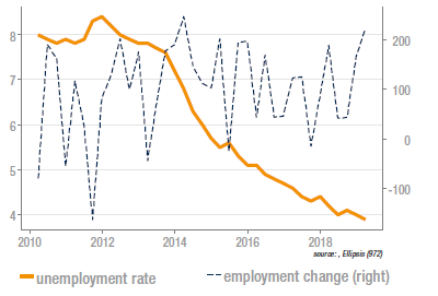 En dépit des annonces largement médiatisées de l’intention de certaines entreprises de délocaliser leur activité dans l’UE, le marché de l’emploi au UK montre une remarquable résistance. Ainsi, le taux de chômage a surpris positivement le consensus, à 3,9% (contre 4,0% attendu), de même que le nombre d’emploi créés, à +222k (contre +120k attendu). Les salaires dans le secteur privé ont progressé au rythme robuste de +3,6% en glissement annuel. Ces données suggèrent donc que l’activité économique reste bien orientée. A noter toutefois que les indicateurs avancés présentent un tableau un peu plus pessimiste, avec des composantes «emploi» des enquêtes Markit en léger retrait.