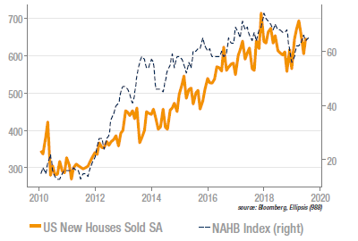 Les ventes de maisons neuves individuelles ont affiché une hausse substantielle en juin (+7%) mais la révision à la baisse des mois de mars, avril et mai on fourni l’image d’un marché en stagnation (le niveau actuel est inférieur à celui de la fin 2017). Ces chiffres sont décevants si l’on considère que les taux hypothécaires ont connu une forte baisse depuis le début de l’année.