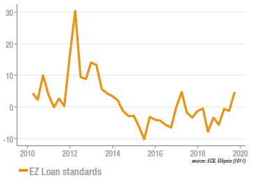 C’est en France et en Italie que le phénomène est le plus visible. A noter également que depuis le début de l’année, les marges augmentent dans l’ensemble, après une décrue ininterrompue depuis 2015. Ces données, plutôt négatives, soutiennent l’idée que la BCE doit accroître le niveau d’accommodation monétaire.