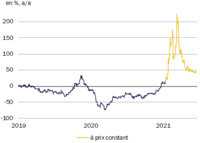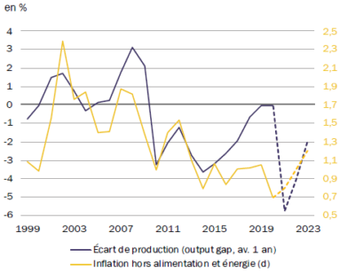 En outre, une augmentation à grande échelle des mesures de relance pourrait rapidement combler les écarts de production, en particulier aux États-Unis. Un écart de production positif est cohérent avec un PIB réel supérieur au PIB potentiel et, par conséquent, les prix ont tendance à augmenter en réponse à une hausse de la demande. Le renchérissement du prix des matières premières et des coûts de transport, notamment maritime, pourrait également stimuler l’inflation.
