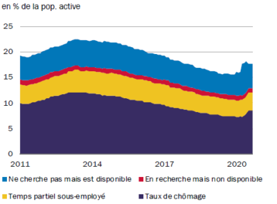 De leur côté, les faillites d’entreprises ont chuté pendant la crise sanitaire contrairement aux récessions précédentes, reflétant en partie les moratoires sur les dépôts de bilan mis en oeuvre dans certains pays. Or, ce déclin artificiel masque une détérioration imminente du marché du travail à mesure que ces moratoires seront levés, selon un calendrier de sortie propre à chaque pays. Par conséquent, la sous-utilisation des capacités – déjà élevée – sur le marché du travail devrait s’aggraver et le retour au niveau d’emploi d’avant crise ne pourrait se réaliser que dans plusieurs années.