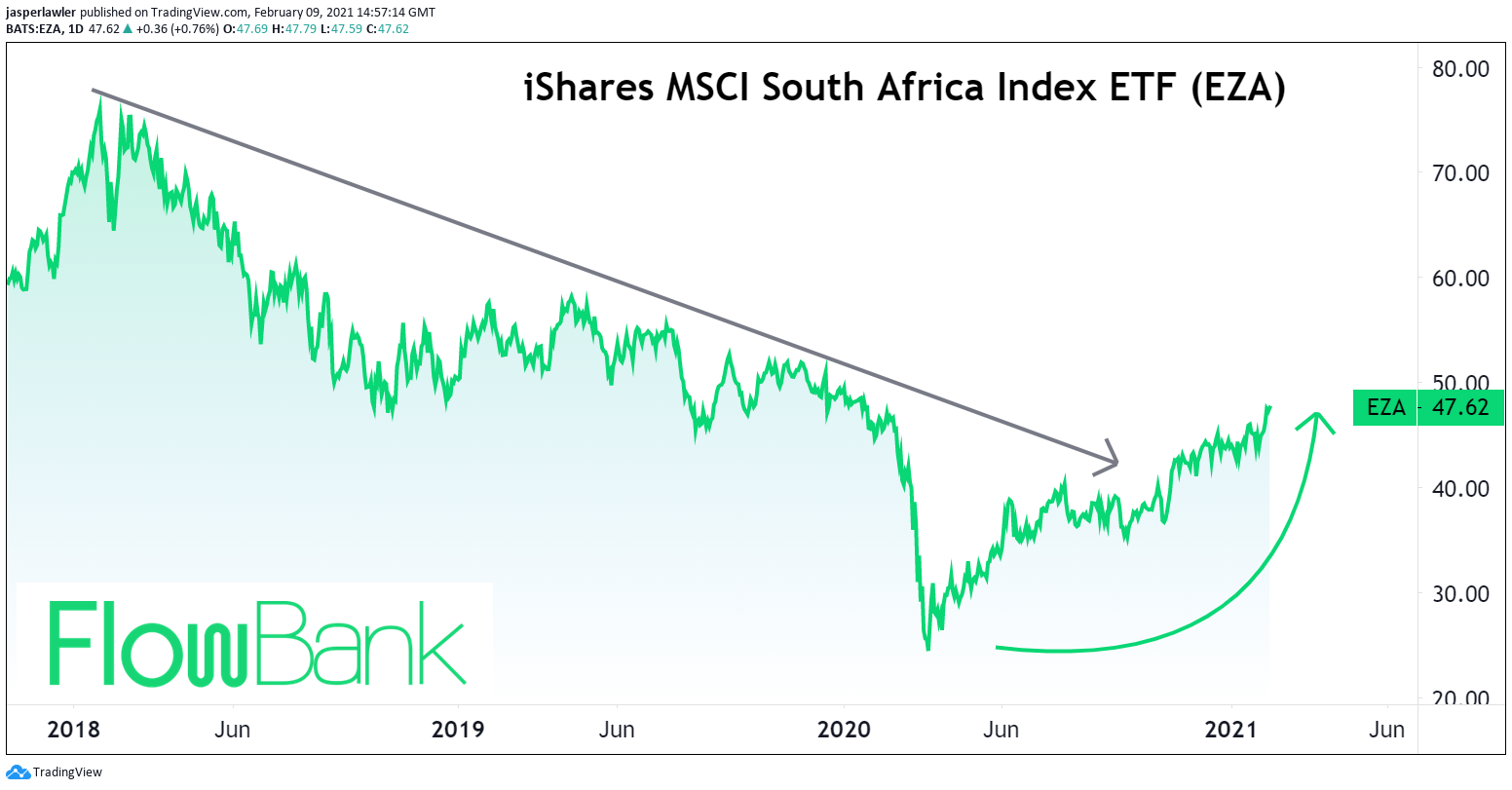 Les marchés d’actions des pays émergents connaissent un très bon début d’année avec une appréciation de près de 10%. C’est le cas de l’Afrique du Sud et ce malgré les difficultés rencontrées par le pays face à la deuxième vague du Covid-19 et l’arrivée d’un nouveau variant.