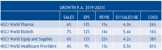 Malgré un début d’année convenable, 2018 s’est terminée sur une note très négative. Au cours du dernier trimestre, les marchés des pays développés ont chuté de 12,8 % (MSCI World AC), tandis que les marchés émergents ont perdu 7,5 %. En recul de 9,4 % sur les marchés développés, le secteur de la santé ne s’est guère révélé défensif, tandis que sur les marchés émergents, la situation était encore pire, puisqu’il a perdu 16,2 %. Les entreprises de petite et moyenne capitalisations du secteur de la santé (-25,6 %) et des biotechnologies (-20,5 %, indice Nasdaq Biotech) ont été les plus pénalisées. Les entreprises pharmaceutiques (-6,4 %) ont, en revanche, mieux résisté, tandis que les technologies médicales et les services ont avancé à tâtons entre ces deux extrêmes.