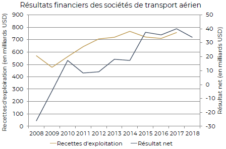 Au niveau financier, les compagnies aériennes vont réaliser en 2018 de très bons résultats. Après un chiffre d’affaire global de plus de 750 milliards en 2017, le résultat net des compagnies aériennes devrait se situer à 34 milliards d’USD, dont environ la moitié en provenance des compagnies d’Amérique du nord.