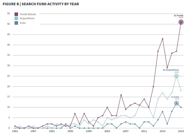 Ces fonds ont pris leur essor dans les années 90 et 2000. Après un ralentissement en 2016, le nombre de nouveaux «search funds» a encore augmenté, pour atteindre un record de 51 nouveaux fonds à la fin de 2019.